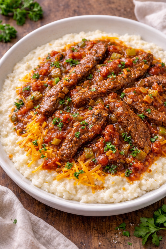Slow-braised beef in a rich Creole gravy served over creamy grits — a soulful Louisiana brunch classic that eats like comfort in a bowl.