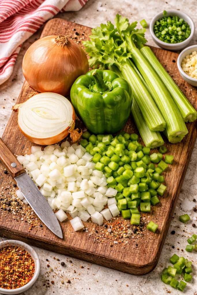 - The “Holy Trinity” (onion, bell pepper, celery)